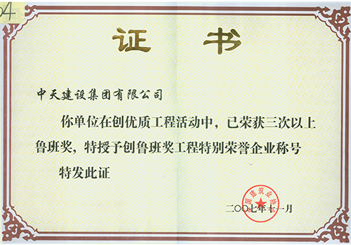 创鲁班奖工程特别荣誉企业